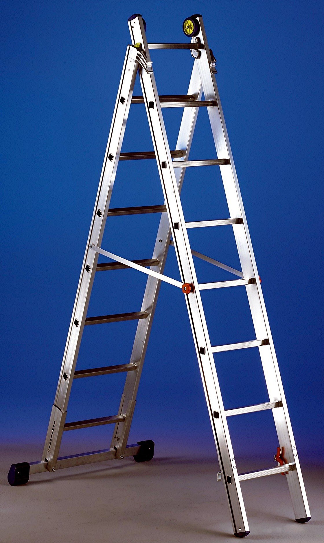 - Transformabilité : Cette échelle peut être utilisée sous deux configurations différentes : en échelle droite et en échelle double, ce qui la rend extrêmement polyvalente pour toutes vos tâches.