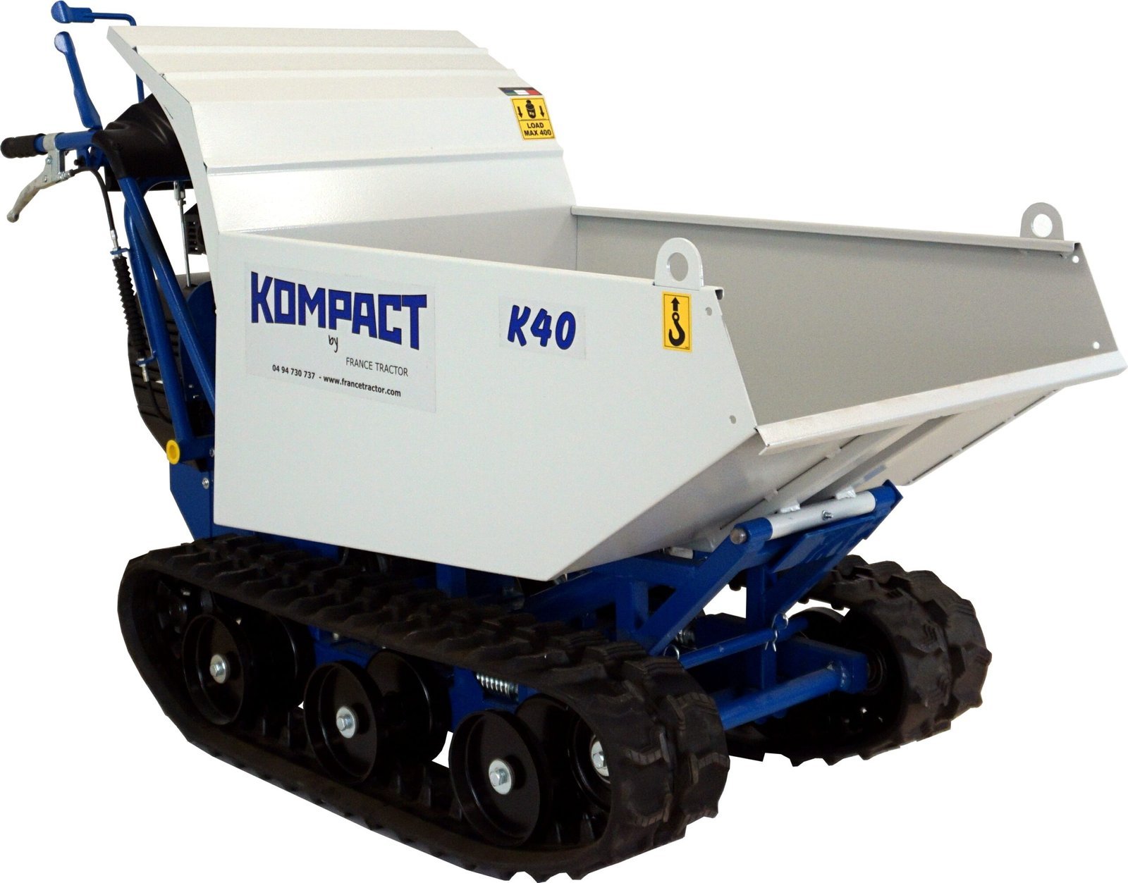 Cuve 200L basculement hydraulique pour brouette à chenilles K40GC – Transport gravats & matériaux