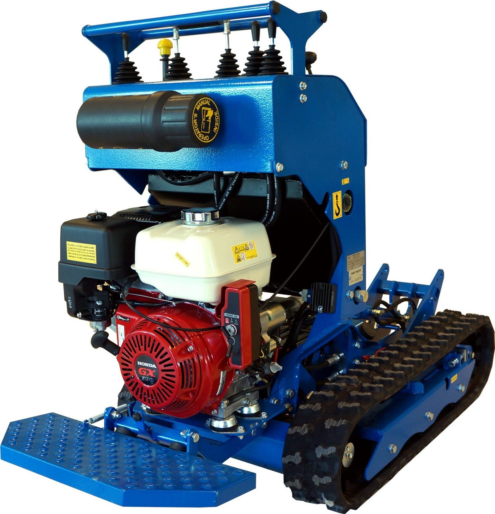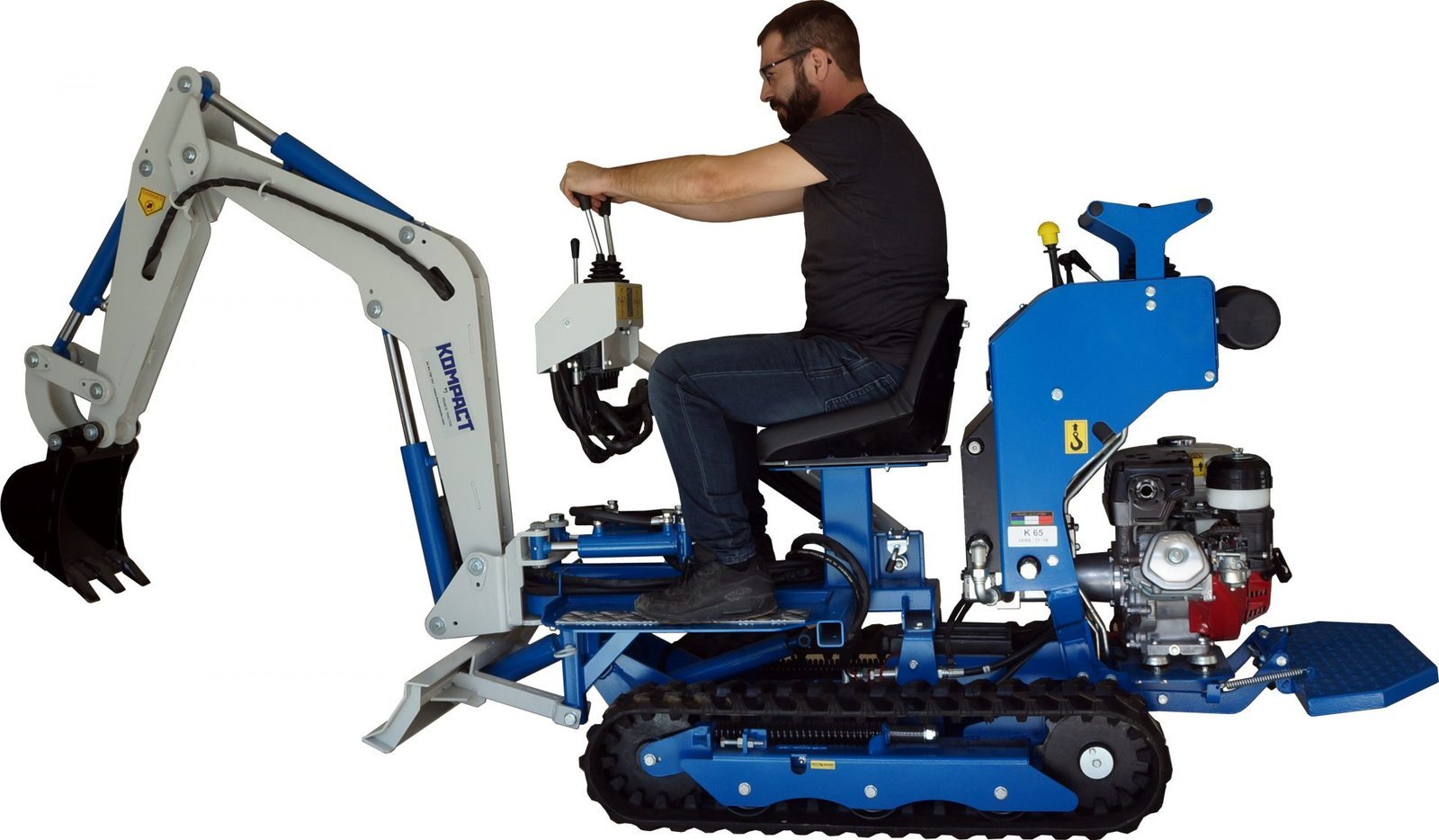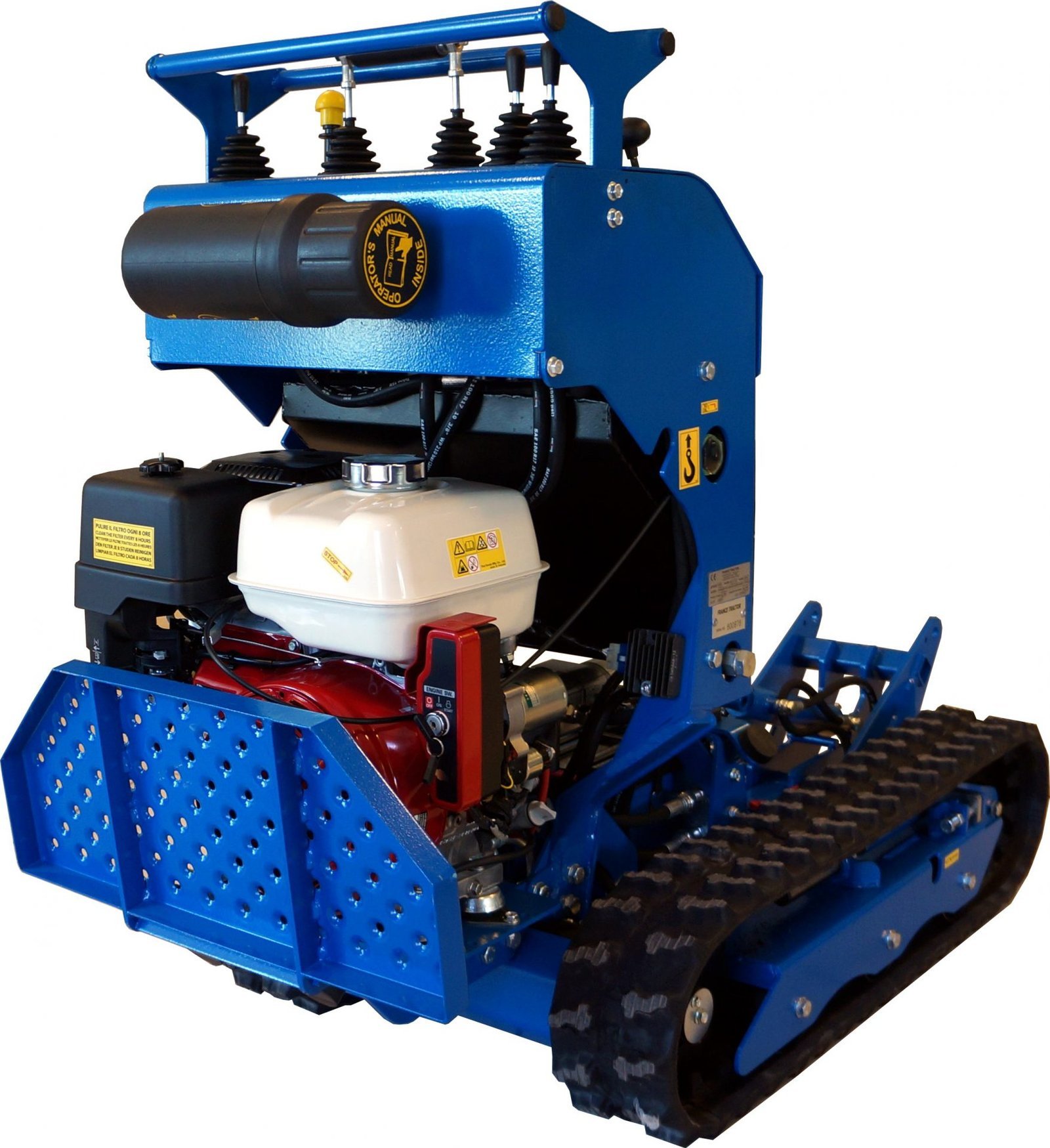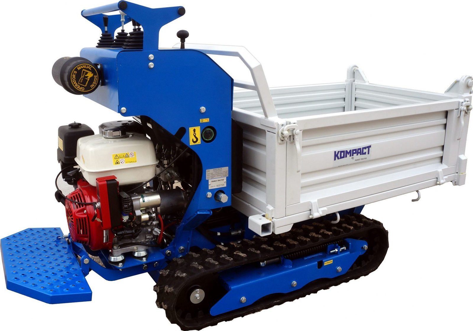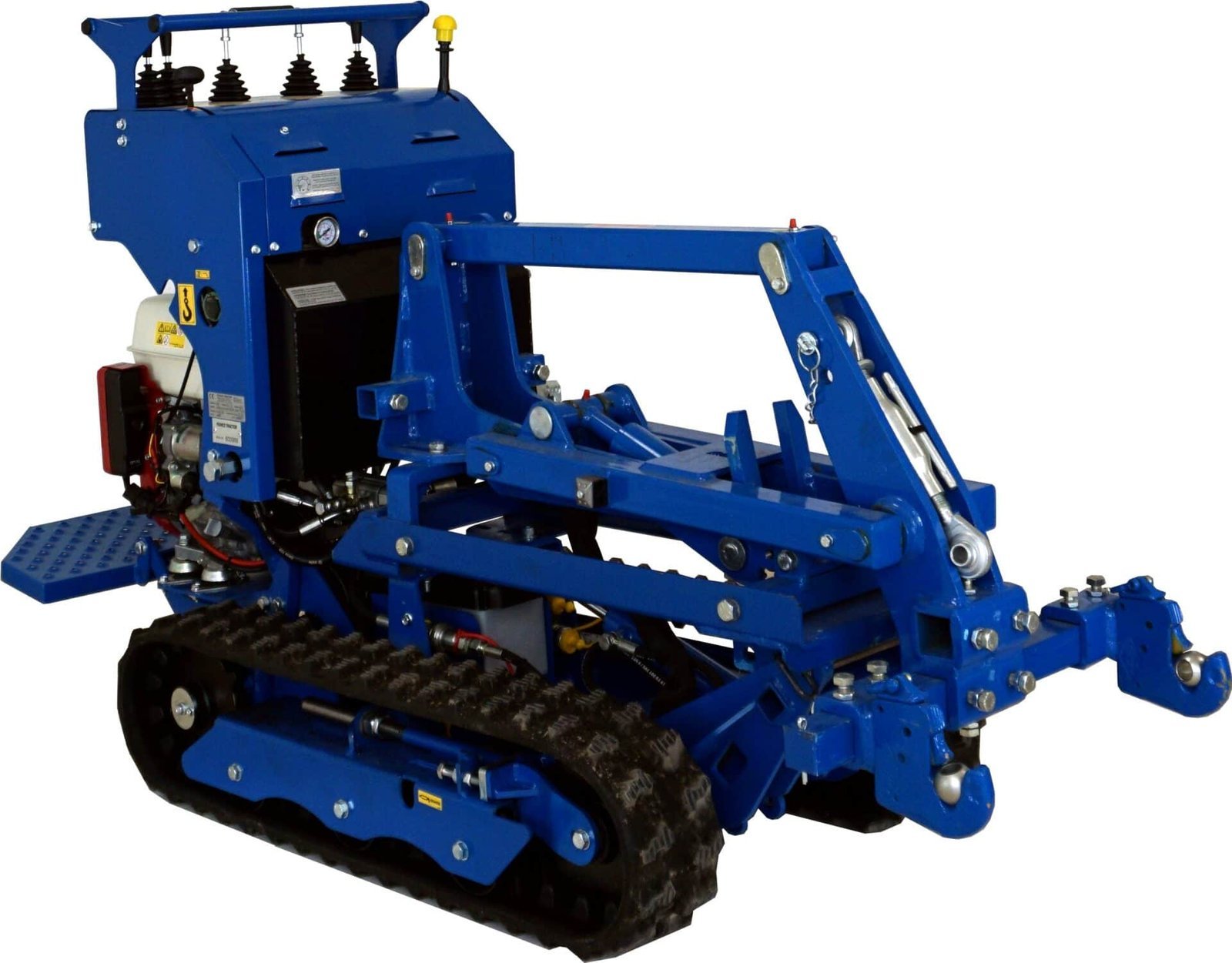 Après 8 ans et plus de 1 000 chenillards K65 standard vendus, une nouvelle version : « Spéciale vignes » vient compléter notre gamme viticulture Polyvalent, il peut tirer une charrue, pousser des interceps, recevoir un broyeur à sarments, un atomiseur, une rogneuse, un plateau de débardage mais aussi une mini pelle ou une benne auto chargeuse. Pour les tournières étroites en bout de rang, les charrues peuvent être montées sur un parallélogramme. Doté d’une mono-poignée de direction, le guidage s’effectue d’une seule main, sans fatigue et avec une grande précision. Une barre de maintien large permet au pilote de s’arrimer fermement quelque soient les difficultés du terrain. Notre K65 « Vignes » est équipé en série de clapets antiretour sur ses moteurs d’entrainements hydrauliques, cela lui confère une excellente sécurité en charge sur fortes pentes. Pour compenser tout risque sur dévers, nous avons travaillé sur l’abaissement optimal du centre de gravité afin d’obtenir un très haut niveau de sécurité. GARANTIE TOTALE : 3 ANS ( Lire l’onglet : Garantie en bas de page )