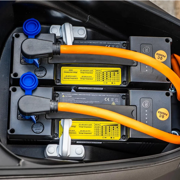 Le 125 électrique pensé pour la route : grandes roues, double batterie amovible et confort de conduite incomparable. Le EasyWatts E-Coral est un scooter électrique 125 cm³ conçu pour ceux qui recherchent stabilité, autonomie et polyvalence , que ce soit pour les trajets quotidiens, les déplacements interurbains ou les longues balades. Ses grandes roues de 16 pouces assurent un confort de conduite supérieur et une tenue de route exceptionnelle, même sur les routes irrégulières. Avec ses deux batteries amovibles et son moteur de 4000 W , le E-Coral offre jusqu’à 130 km d’autonomie et une vitesse maximale de 90 km/h , le tout dans un format maniable, léger et très pratique au quotidien. Un scooter pensé pour rouler loin, rouler confort, et rouler longtemps. ✅ Ses points forts : Grande autonomie jusqu’à 130 km grâce aux 2 batteries amovibles. Grandes roues 16″ : stabilité, confort et visibilité accrue. Puissant moteur 4000 W : idéal pour la ville, la campagne et les trajets interurbains. 90 km/h + 3 modes de conduite pour maîtriser vitesse et consommation. Plancher plat : parfait pour le quotidien ou les petits transports. Clignotant sonores et phares LED pour plus de sécurité. Maniabilité exemplaire : rayon de braquage court, marche arrière. Recharges simples : sur le scooter ou à domiciles en retirant les batteries Equipement complet : USB, écran LCD, LED, repose-pieds passagers, freins hydrauliques CBS.